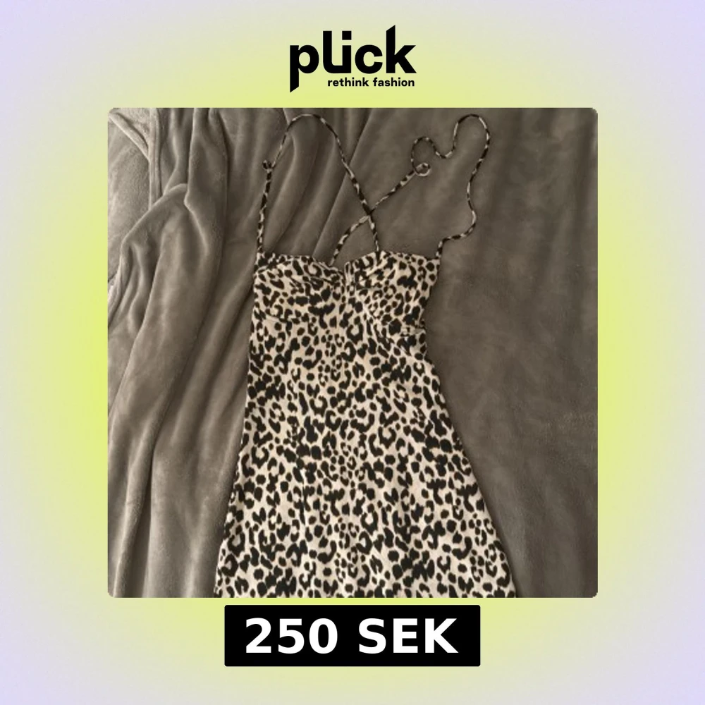 Säljer en snygg leopardmönstrad klänning med smala axelband och markerad byst. Klänningen har en figurnära passform och är tillverkad i ett mjukt, glansigt material. Perfekt för dig som vill sticka ut med ett djurmönster.