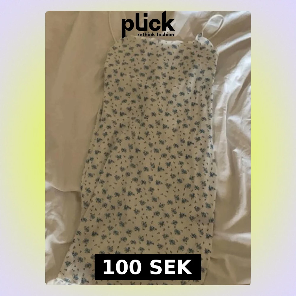 Söt vit klänning med små blå blommor och tunna axelband. Klänningen har en rak passform och är perfekt för varma dagar. Lätt och luftig, passar till många olika stilar.