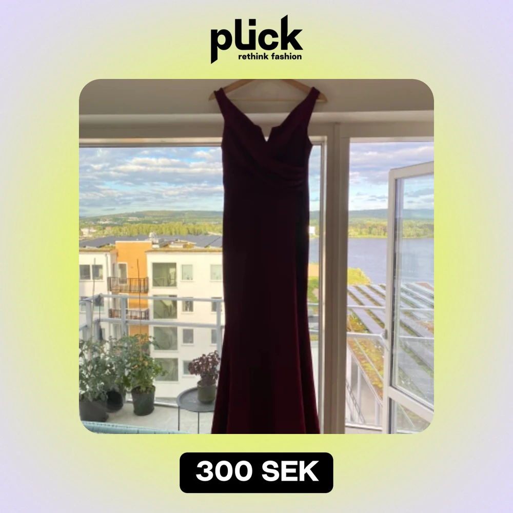 Vinröd bal/aftonklänning Bra skick. Klänningen är använd men i bra skick. Uppsydd i längden. Passar mig som är 163. Storlek S/M Material polyester