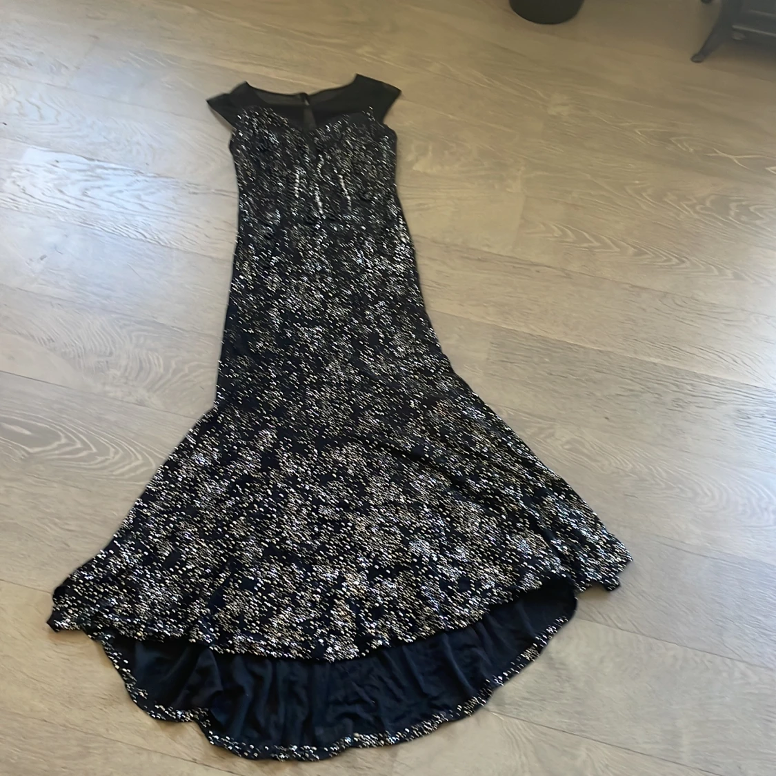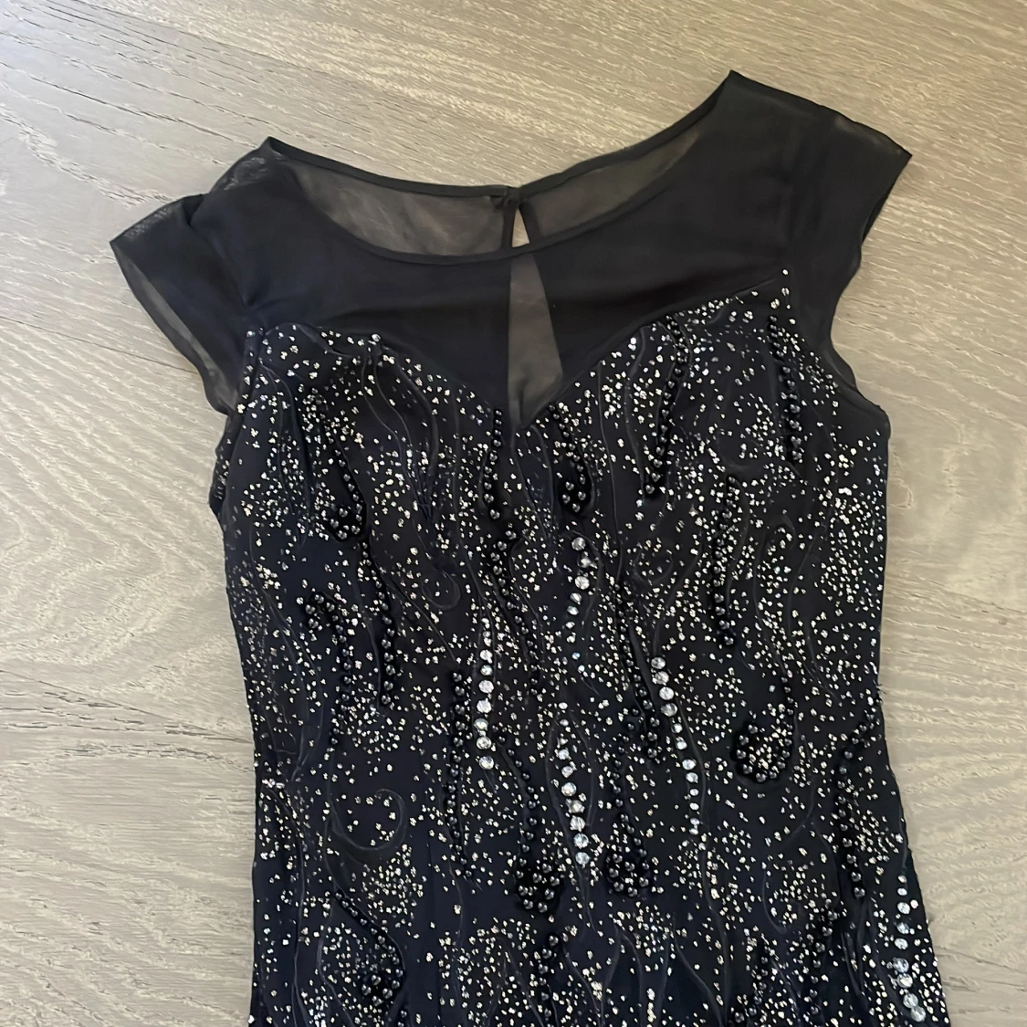 Världens snyggaste balklänning med glittrigt mönster och transparenta detaljer vid axlarna. Klänningen har en vacker fall och är perfekt för festliga tillfällen. Har kupor inbyggd så man kan ha den utan bh. Känner sig verkligen som en prinsessa i den. Köpt utomlnads för ca 6000 kr. ❤️