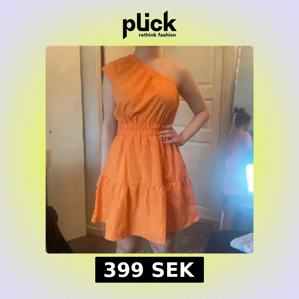 Superfin orange kortklänning med one shoulder-design och resår i midjan. Klänningen har volangig kjol och är tillverkad i ett lätt tyg, perfekt för varma dagar. Snygg och trendig modell som sticker ut med sin asymmetriska axel.
