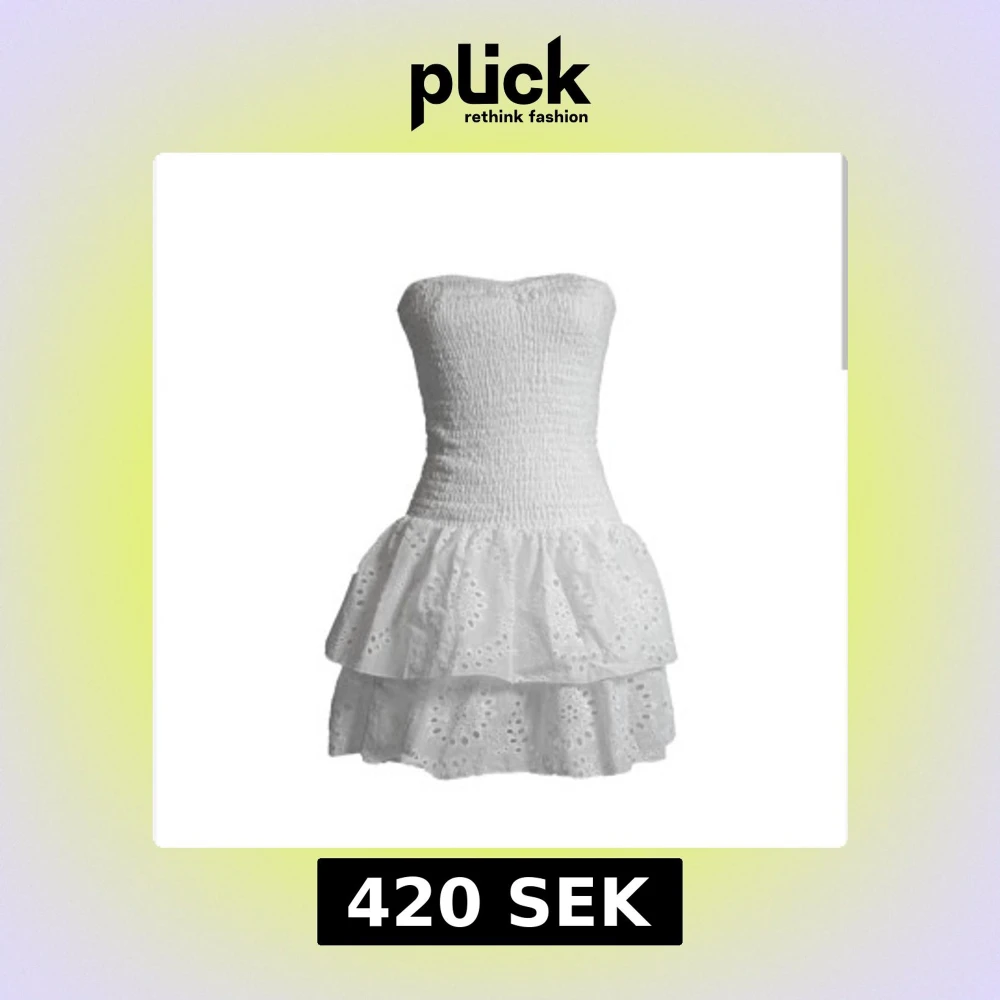 Vit axelbandslös klänning ifrån meet me there storlex S/M💓 skulle säga att den passar från Xs-M då den är stretchig💓 endast använd 2 gånger super bra skick!