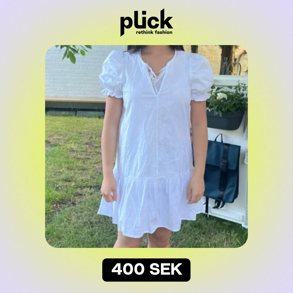 Säljer en superfin vit kortklänning med puffärmar och volangdetaljer. Klänningen har en v-ringad hals med snörning och är perfekt för sommaren. Den är gjord av ett lätt och bekvämt material, perfekt för varma dagar. Passar bra till både vardag och fest!
