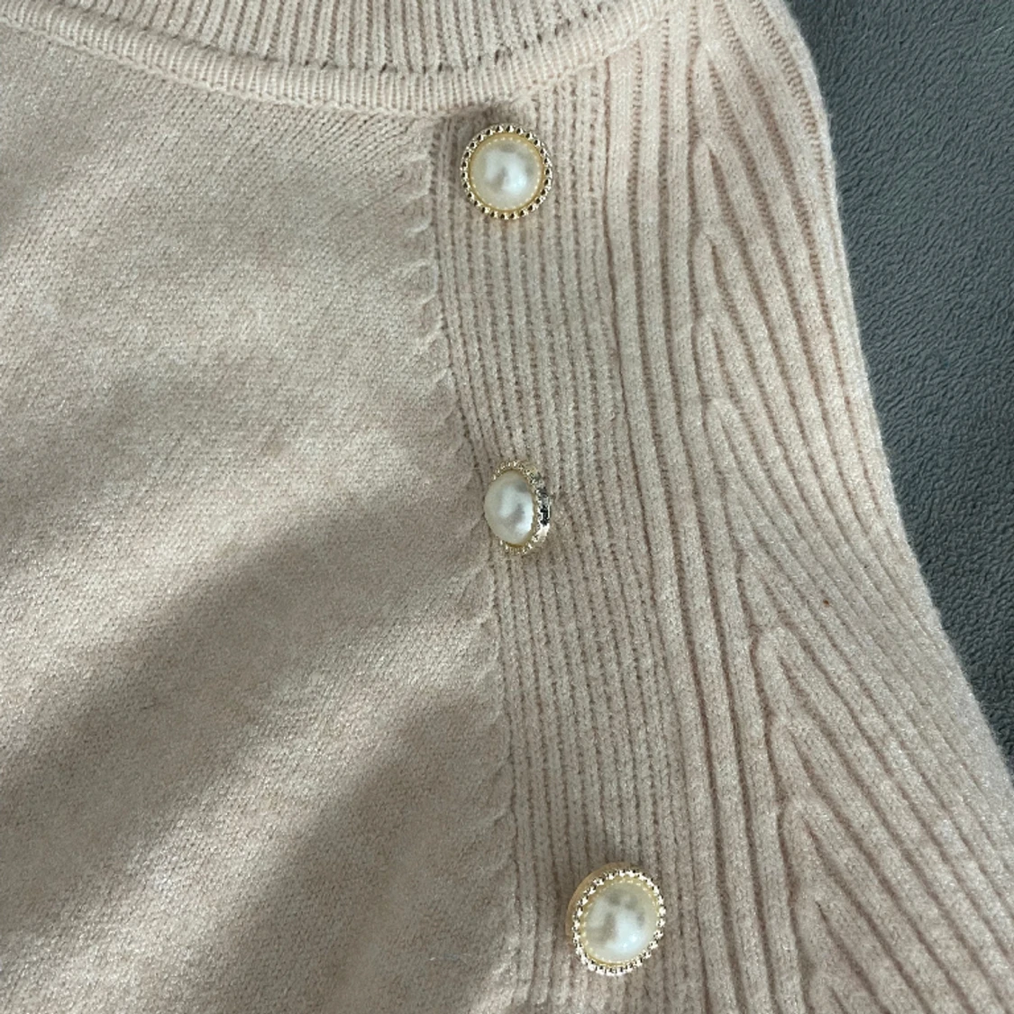 Storlek S/M, jätte skön, super fin, fina detaljer, randigt och lent material, har en hög ”krage” som man viker ner.