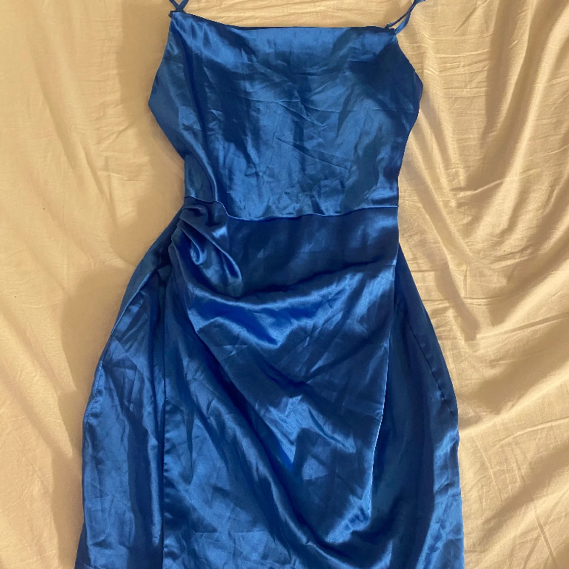 Denna är bara använd 1 gång så det är bra skick, glansig i materialet och faller fint där fram.