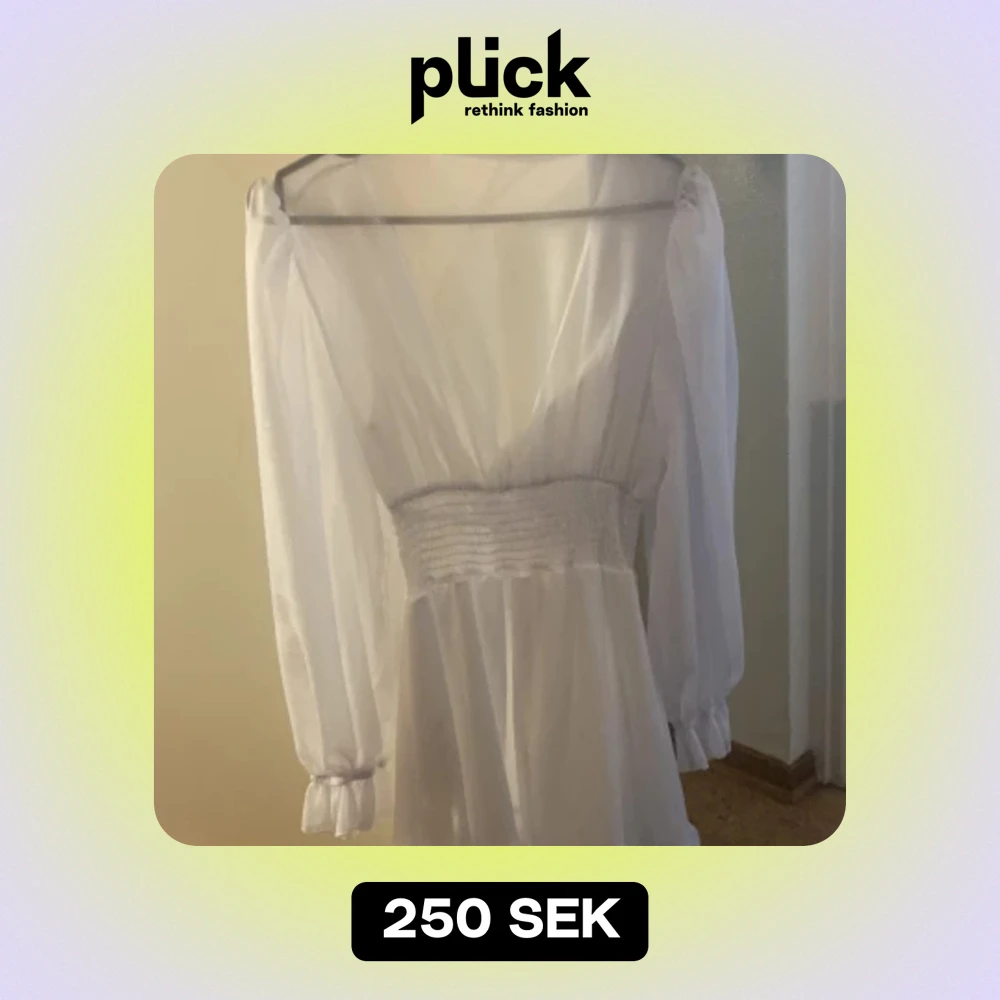 En jättesöt vit klänning. Kanske din blivande studentklänning 🤗 säljer pågrund av för stor på mig i storleken och lite genomskinlig. Säljer för 250 kr + frakt.