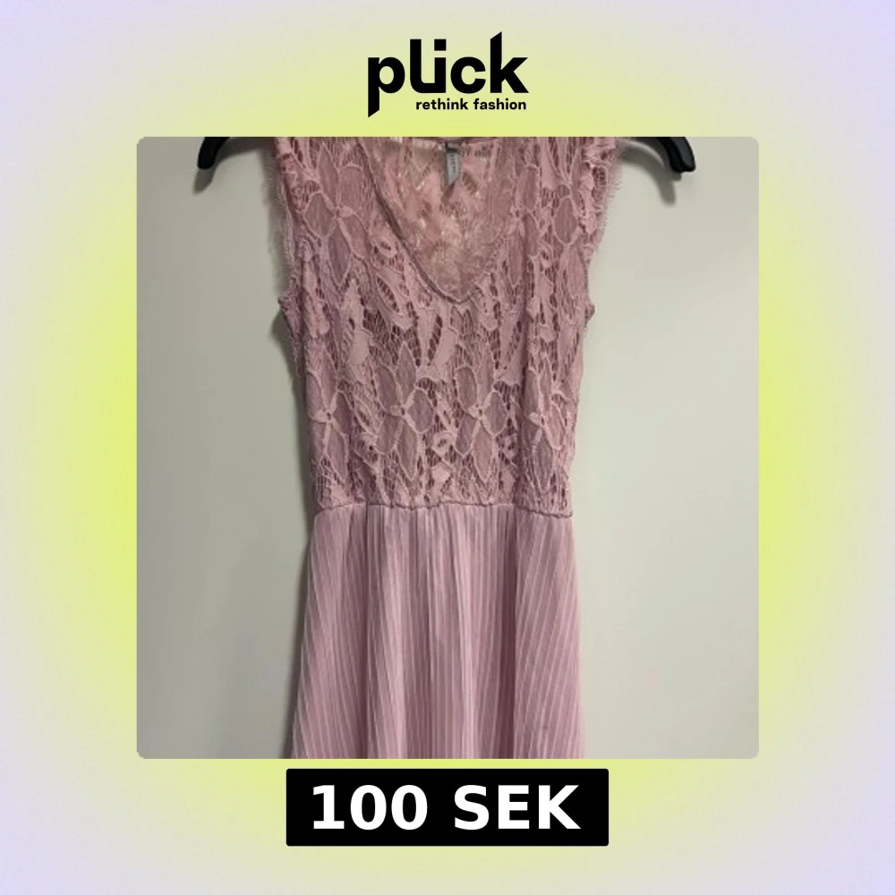 Säljer en superfin rosa långklänning från HM med spetsdetaljer och v-ringning. Klänningen har ett plisserat kjolparti och är ärmlös, perfekt för sommarens fester. 💖