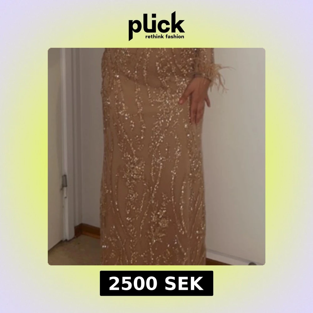 Glittrig beige långklänning