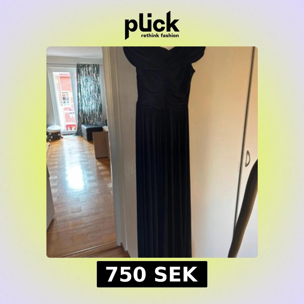 Säljer en elegant marinblå långklänning med offshoulder-modell och v-ringning. Klänningen har rynkade detaljer över bysten och ett mjukt, fallande tyg som ger en snygg siluett. Perfekt för bal eller festliga tillfällen.