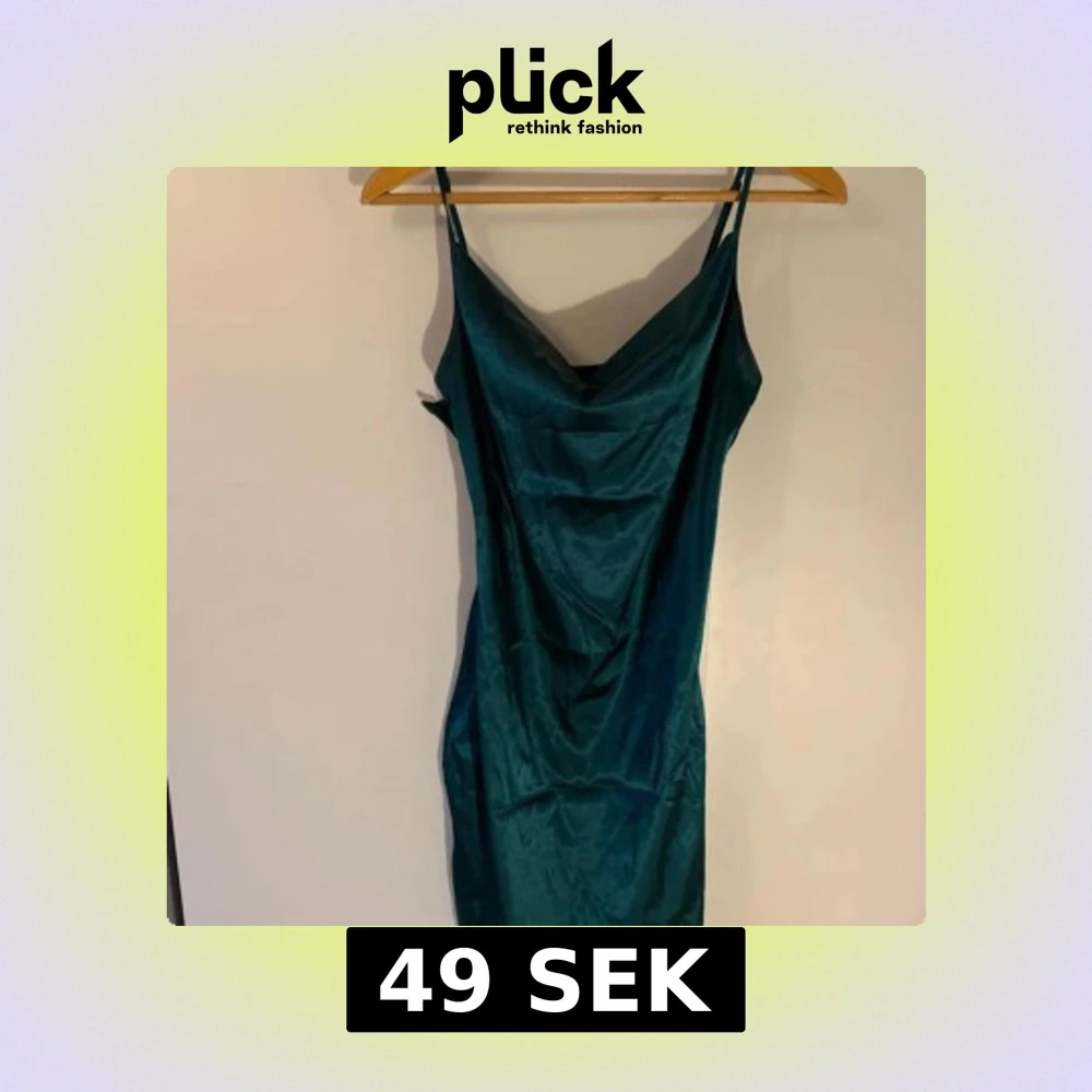 Elegant mörkgrön klänning i siden med smala axelband och en smickrande passform. Perfekt för en stilfull kväll med sin glänsande yta och enkla design. Klänningen har en vacker drapering framtill som ger en extra touch av elegans.