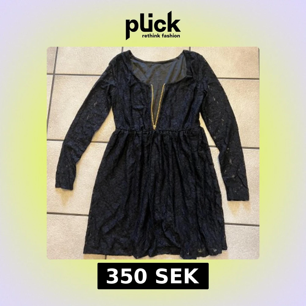 Svart kortklänning i spets med långärmade ärmar och en snygg guldig dragkedja framtill. Klänningen har markerad midja och ett feminint, lätt utställt kjolparti. Perfekt för dig som gillar detaljer och vill sticka ut lite extra.