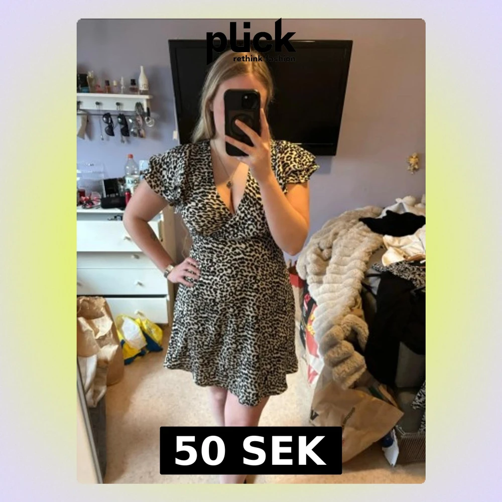 Säljer nu denna snygga klänning med leopardmönster och v-ringning. Klänningen har dragkedja och så man kan knyta i ryggen för en fin passform 🥰