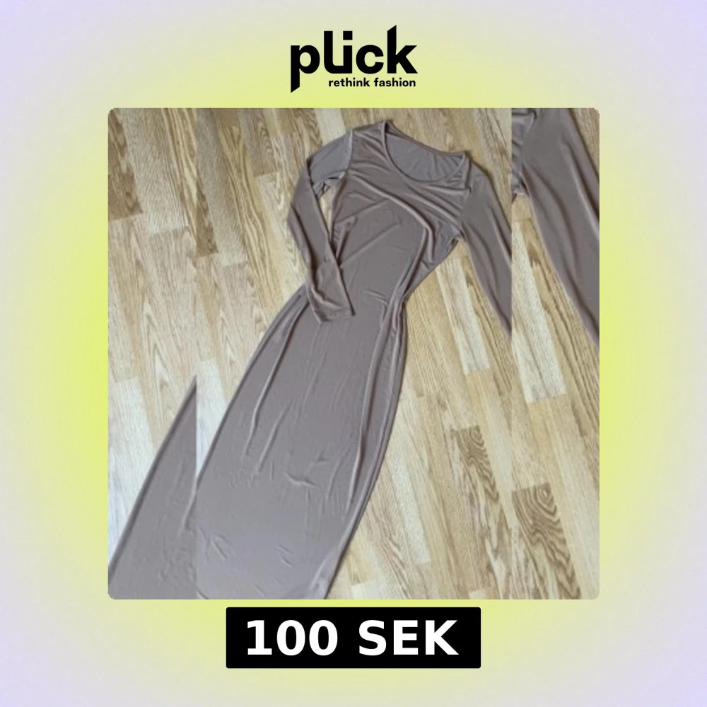 Säljer en stilren beige långklänning med rund halsringning och långa ärmar. Klänningen har en figurnära passform och är tillverkad i ett mjukt, stretchigt material som sitter snyggt på kroppen. Perfekt för dig som gillar minimalistisk stil. Aldrig använd