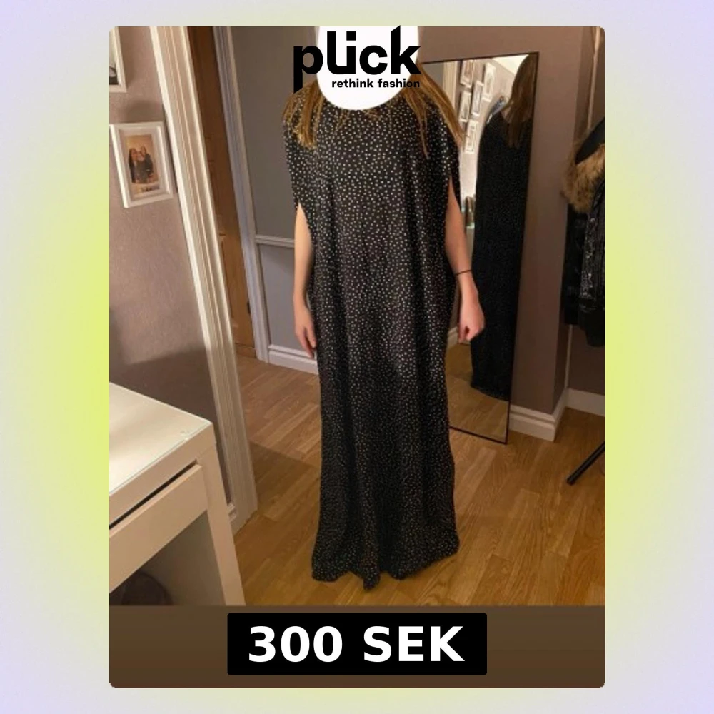 Säljer en svart lång bati med vitt prickigt mönster. Batin har en loose passform och är ärmlös med rund halsringning. Tyget känns lätt och är jätte skön och ha på sommaren eller bara sova i, perfekt för dig som gillar en avslappnad men ändå snygg stil. Batin är i storlek S men passar egentligen i alla storlekar.