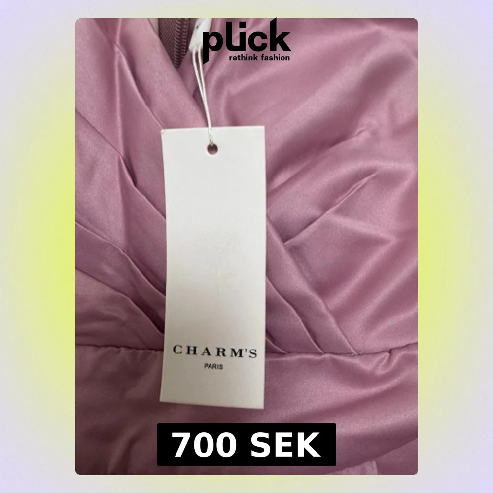 Säljer en elegant ljusrosa långklänning från Charm's Paris. Klänningen har omlottliv med breda axelband och v-ringad hals, samt ett svepande, utsvängt kjolparti i glansigt satinmaterial. Perfekt för speciella tillfällen och ger en lyxig känsla.