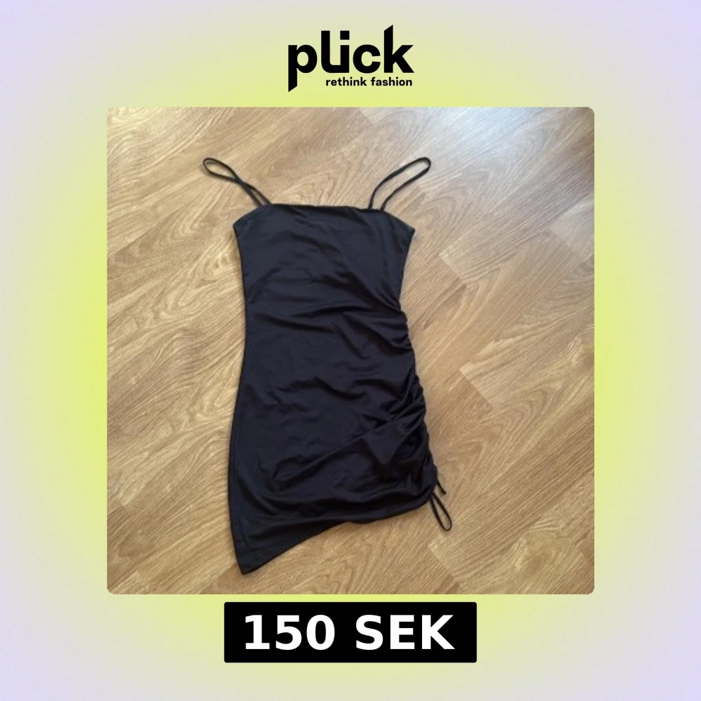 Svart kort klänning med smala axelband från H&M Divided. Klänningen har snygg snörningsdetalj på sidan som ger en rynkad effekt. Tillverkad i mjukt och stretchigt material för en tight passform. Perfekt för dig som gillar minimalistisk och trendig stil.