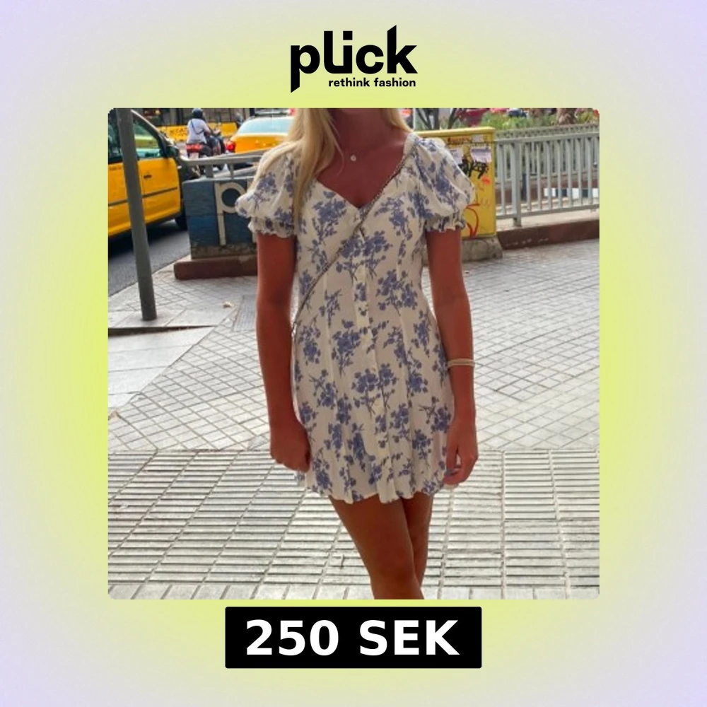 Vit och blå blommig klänning