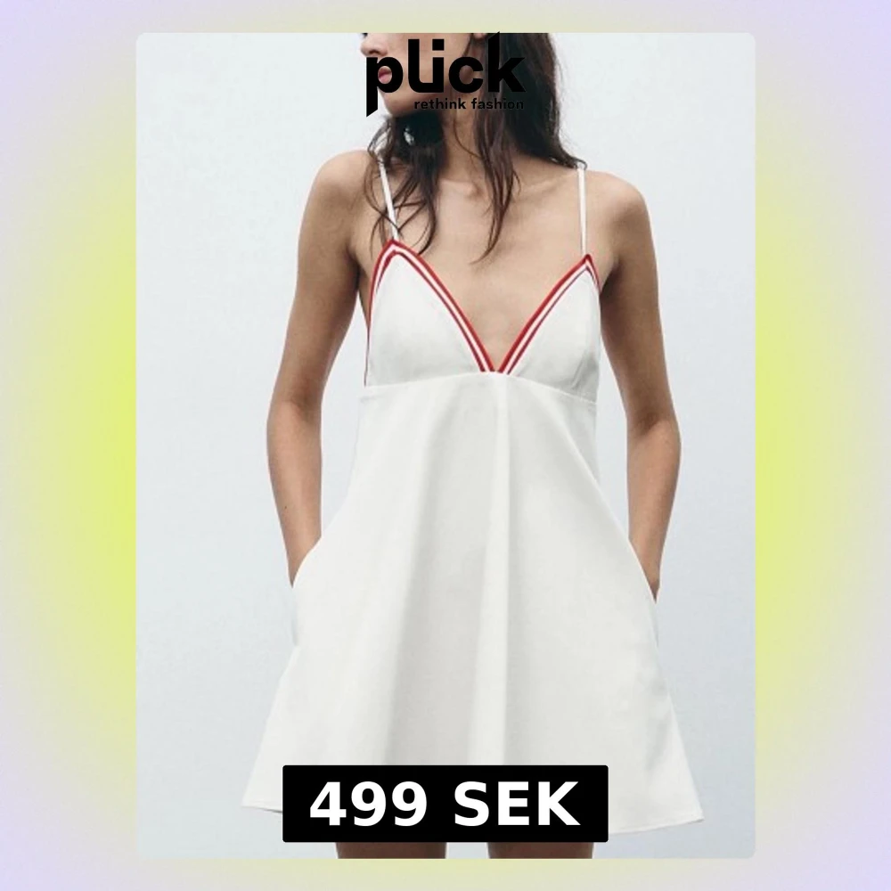 Vit klänning med röda detaljer! Storlek S