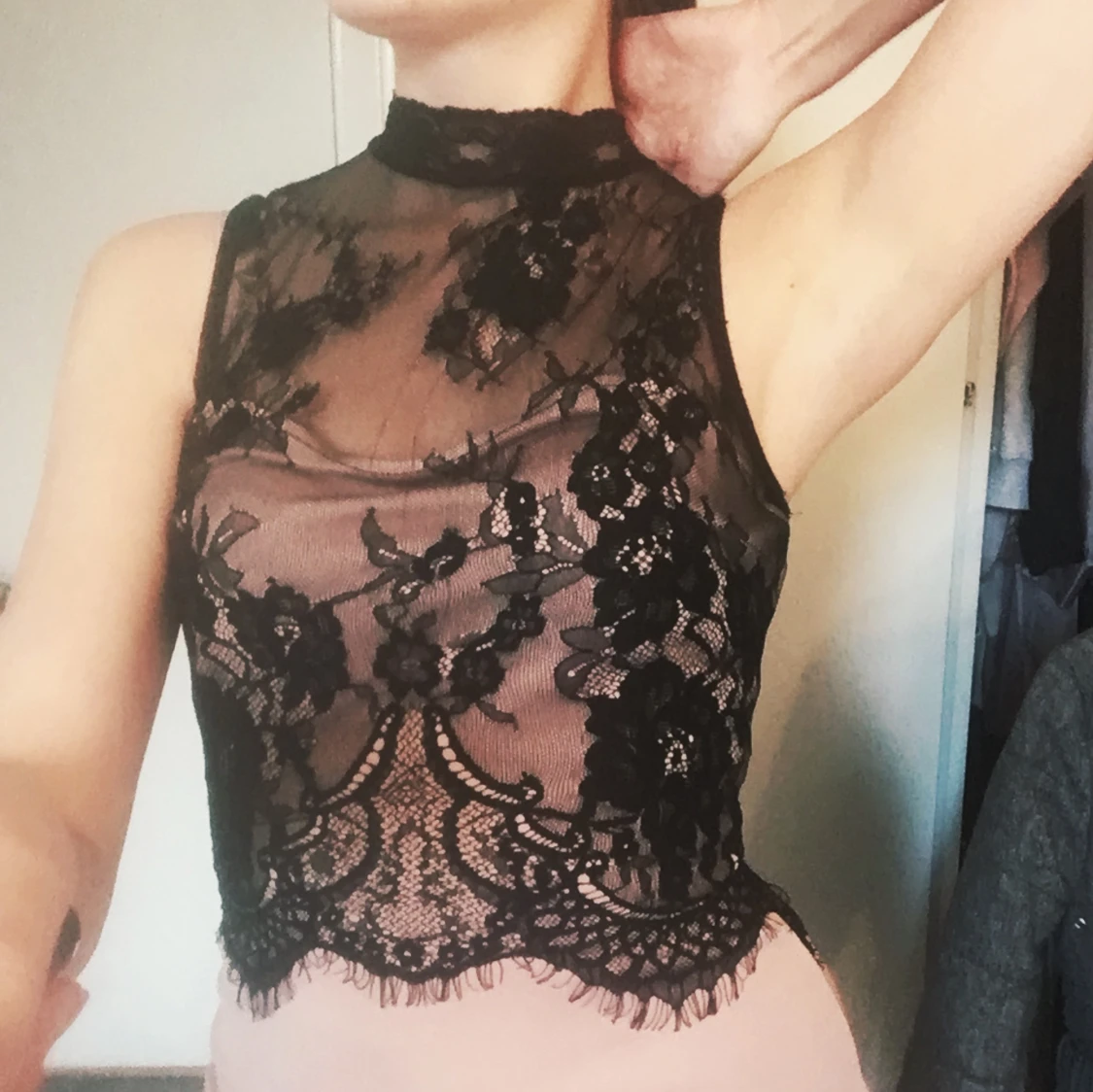 Tajt stretchig klänning med spets