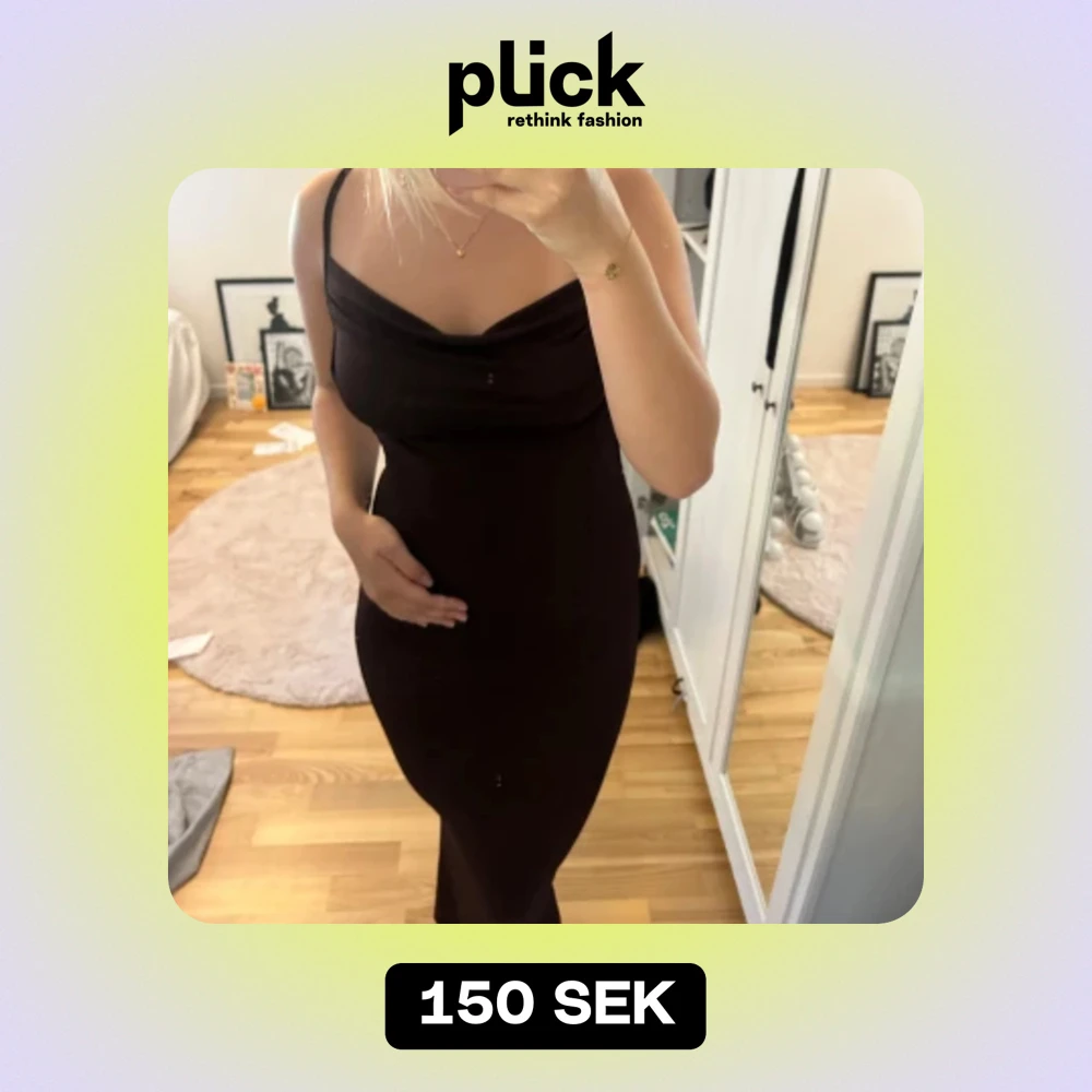Brun lång klänning som går hela vägen till marken på mig som är ca 165cm super fin rygg och även fint fallande fram i bröstet.