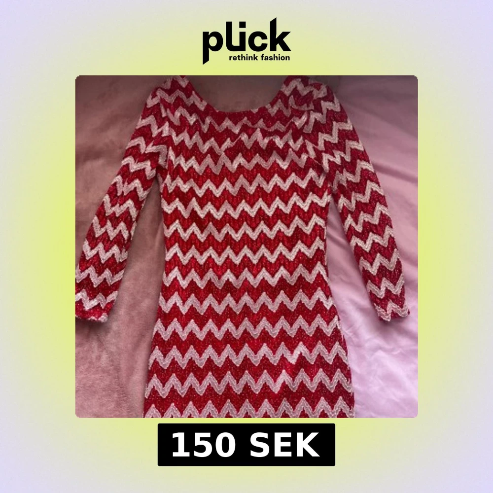 Snygg röd klänning med ett iögonfallande zickzackmönster i silverglitter. Klänningen har långa ärmar och en figurnära passform som gör den perfekt för festliga tillfällen. Den är tillverkad i ett glittrande material som verkligen sticker ut.