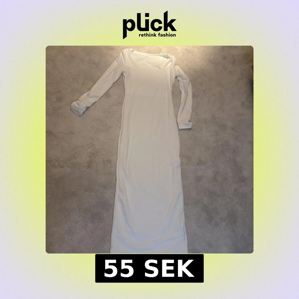 Säljer en elegant vit långklänning med lång ärm och rundad halsringning. Klänningen har en figurnära passform och är perfekt för speciella tillfällen. Aldrig använd, nytt skick, ställ frågor om de behövs 💕