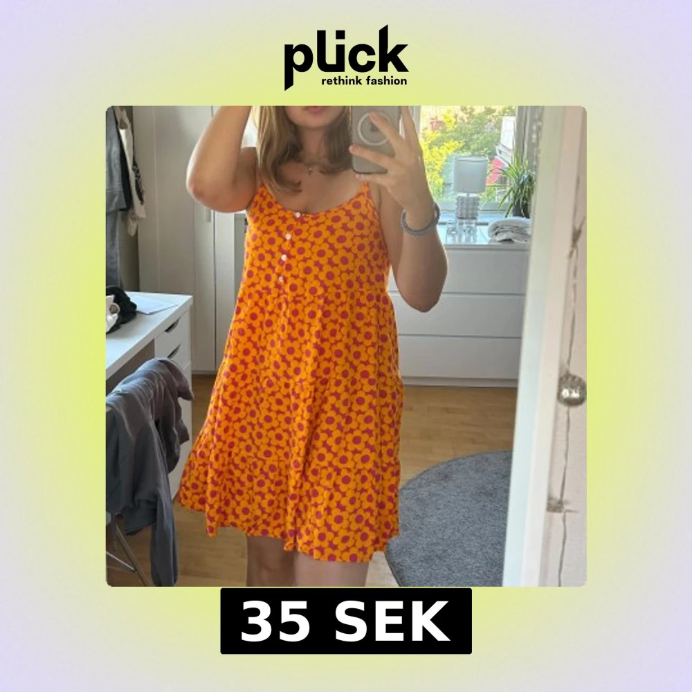 Säljer en färgglad orange och rosa klänning med blommigt mönster! Den är klart för liten för mig och därför säljer jag den! Aldrig används. Storlek S! Skriv om du har frågor eller undrar något!💖