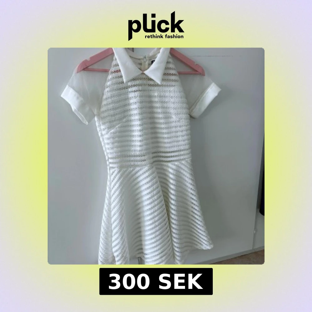 Säljer en söt vit kortklänning från LOX med klassisk skjortkrage och korta ärmar. Klänningen har ett diskret randigt mönster i tyget och dragkedja bak. Perfekt för dig som gillar en stilren och fräsch look.