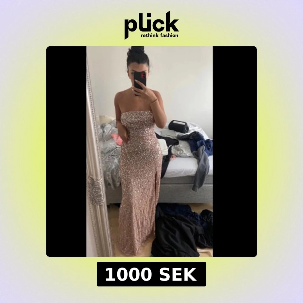 Hej! Säljer denna superfina glittriga balklänningen med slits på sidan✨Klänningen är i storlek S men sytt in den lite i midjan då den var lite stor. Jag är 164cm lång och den nuddar precis golvet. Skriv vid intresse eller frågor❤️OBS: Sänker inte priset!!