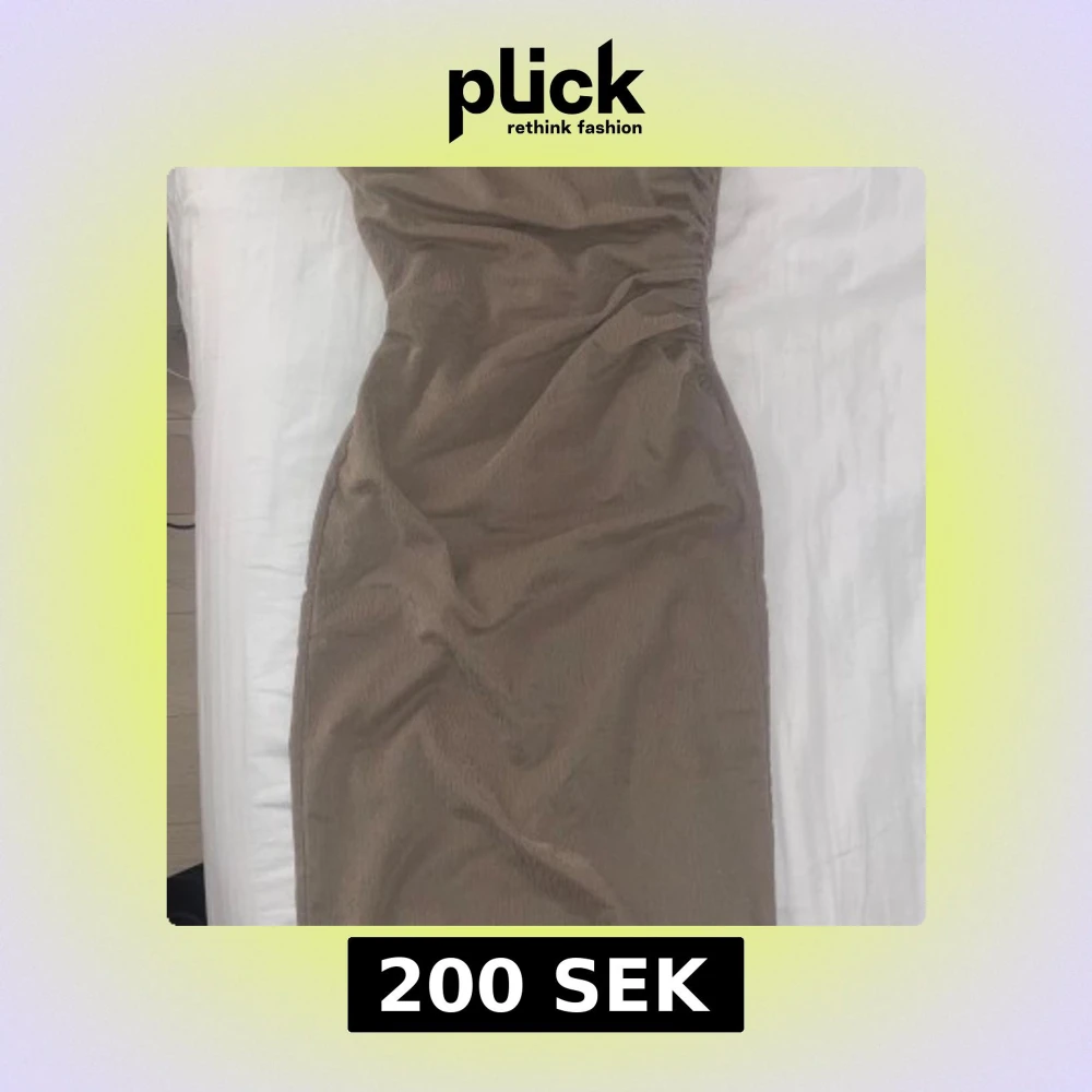 Säljer en beige långklänning i mjukt manchestertyg med figurnära passform. Klänningen har en enkel design utan ärmar och snygga rynkdetaljer på sidan som ger en cool siluett. Perfekt för dig som gillar stilrena och trendiga plagg.