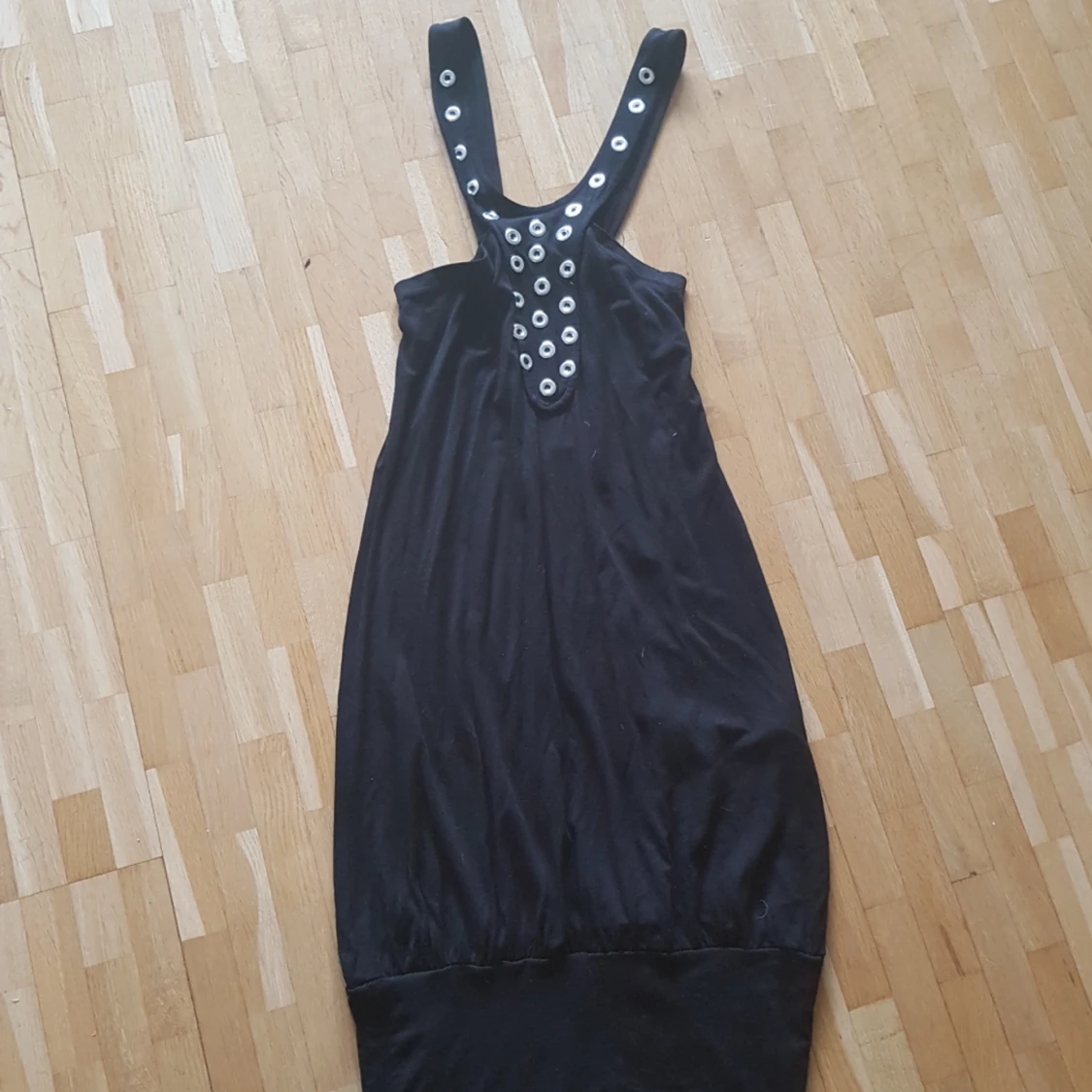Svart klänning med unik dekor i metall Möts upp vid Medborgarplatsen eller Gullmarsplan alternativt skickar, köparen står för frakt
