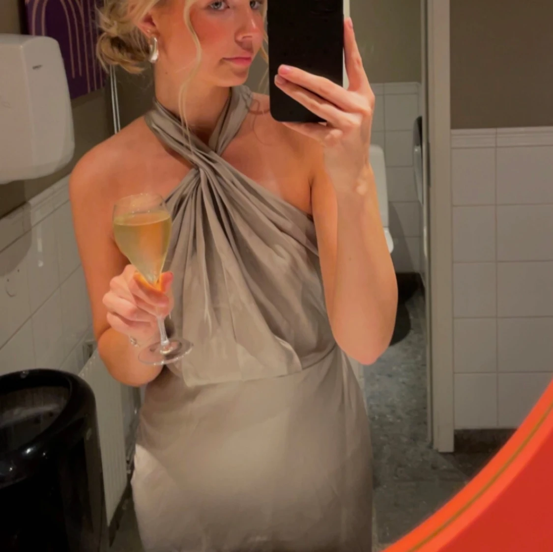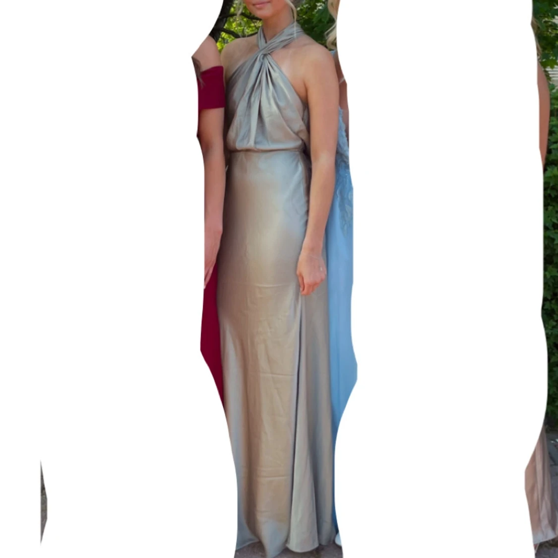 Säljer min fina balklänning. Elegant grön/beige långklänning med halterneck-design. Klänningen har en draperad framsida och en smickrande passform. Älskar denna!! Nypris 1700 kr. Endast använd en gång och tvättad därefter.