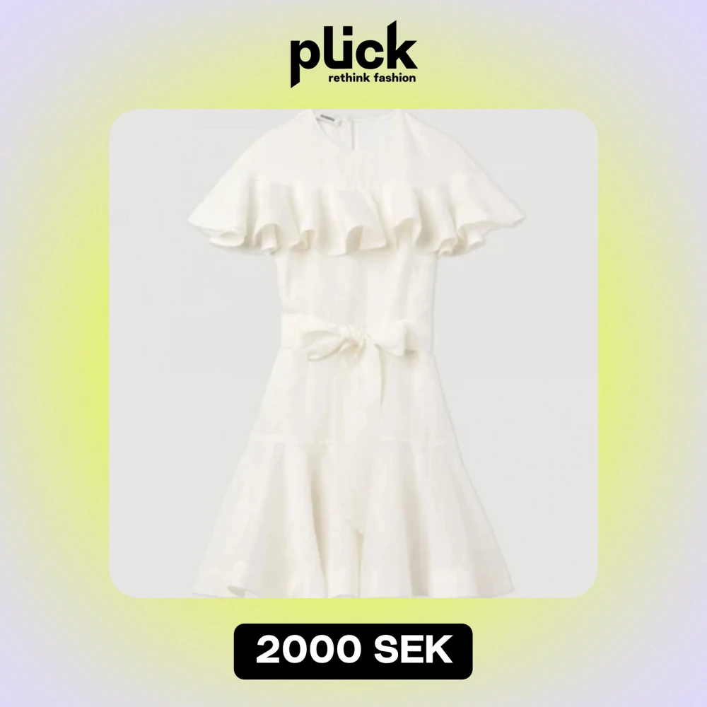 Vit plisserad kortklänning med volang - Så fin och eftertraktad klänning från Zara! Säljs inte längre, endast använd vid 1 tillfälle! Storlek xs💕