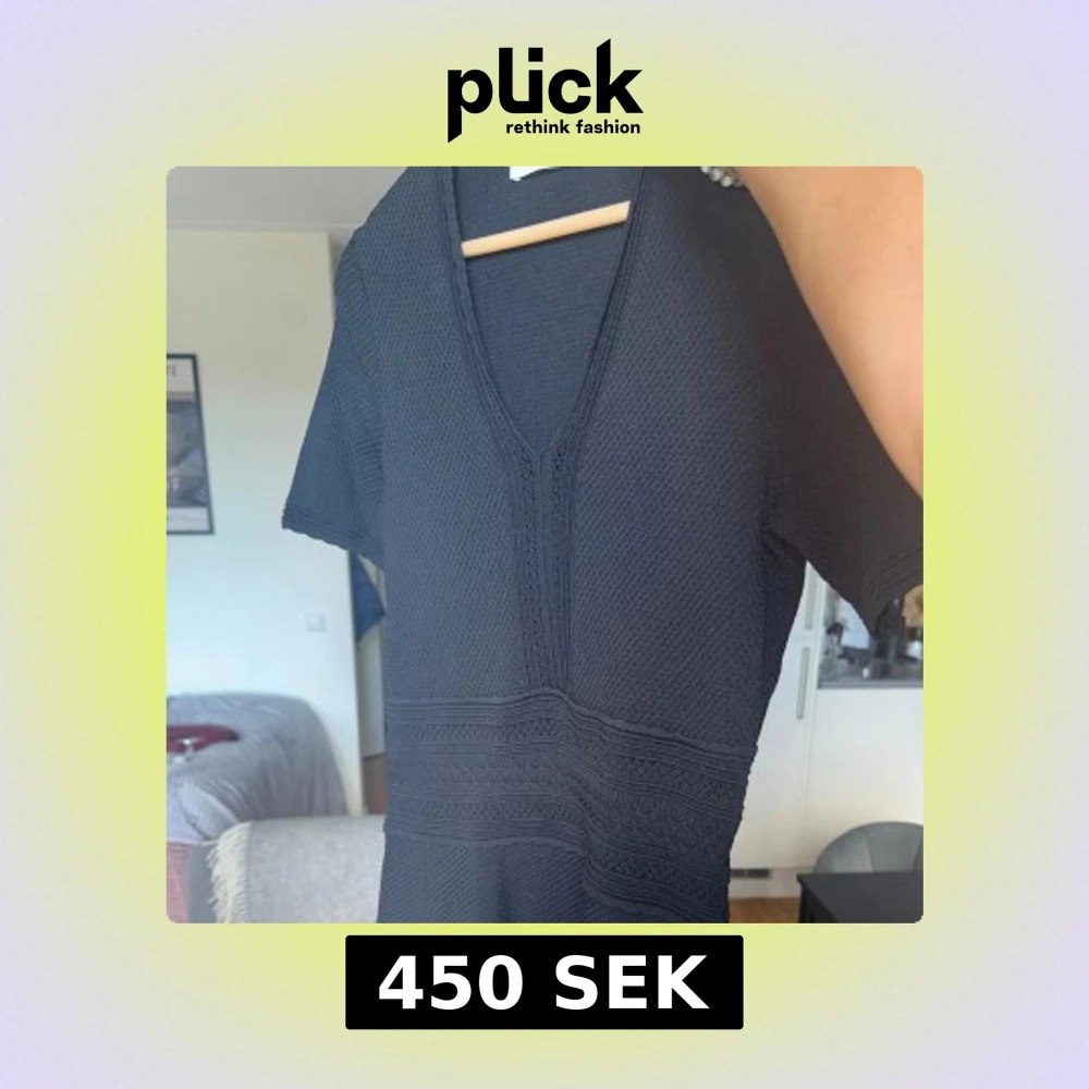 Svart klänning från sandro - typ virkad - storlek S i jättefint skick, sitter tight upptill och kjolen lägger sig med volanger nästan, slutar ungeför i mitten på låret på mig some 167