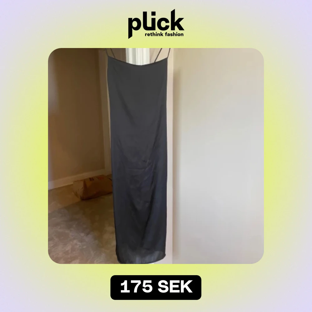Lång svart satin klänning med slit från pull & bear. Använd 1 gång, Kan skicka fler bilder vid intresse Köparen står för frakten