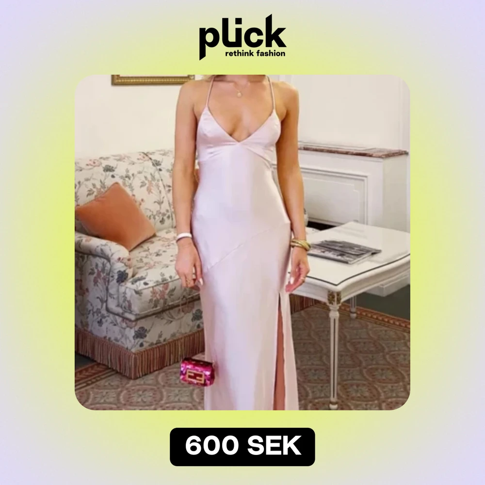 Ljus rosa satin klänning. V- ringad och mycket fin rygg