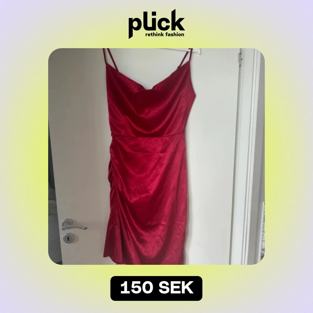 Snygg röd satinklänning i storlek m. Kommer tyvärr inte till användning