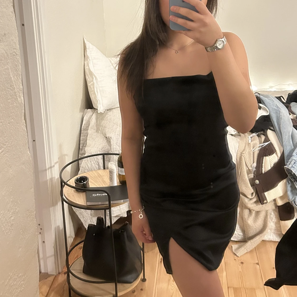 Svart satinklänning i fint skick strl S, snurr slits Bra kvalitet, lägger sig fint pris diskuterandets Köpare står för frakt / mötas i Uppsala Säljer mycket, vid köp av fler plagg kan paketpris fixas
