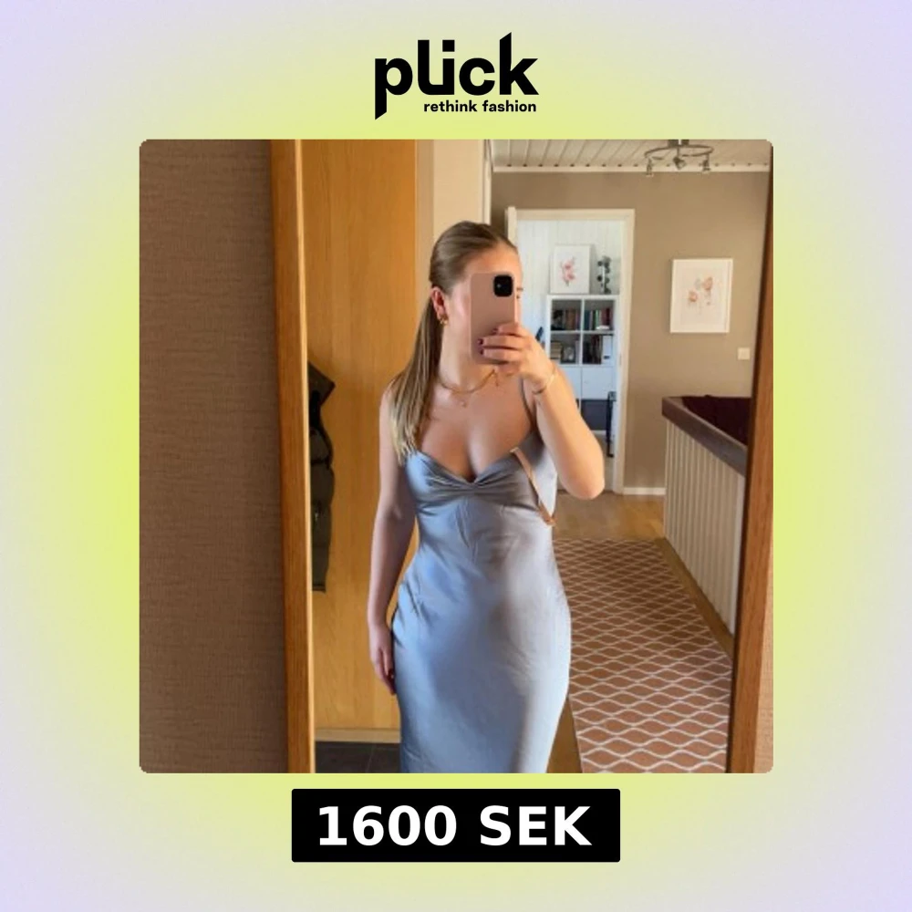 Lång satinklänning i en ljusblå färg, perfekt till bal! Jag är 162 och den går ner i marken på mig, helt oanvänd med alla lappar osv kvar💗storlek 36 och den passar mig perfekt som har 36/S i vanliga fall, nypris 1800 kr🙌🏻