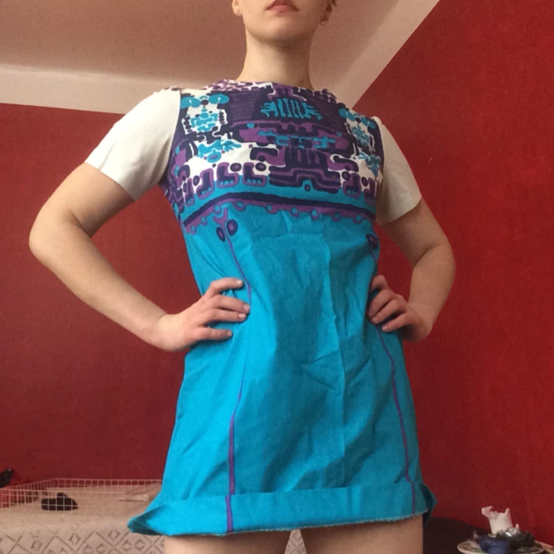 A real vitage-dress from the 60’s or 70’s with great purple and blue patterns.