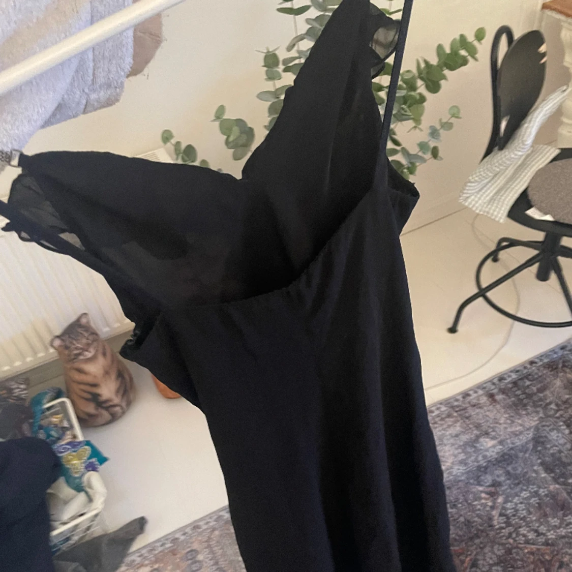 Lite längre klänning som är har fina volanger och spännen med detaljer. Finns ingen storlek men skulle säga S. Köpt second hand i Argentina.