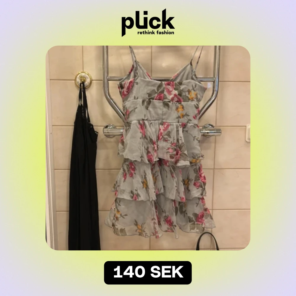 Tyvärr är den här super söta och fina volang klänning lite för kort på mig. Den är köpt på second hand och kan inte hitta något märke men den är som ny. Det står bara storlek 12 men skulle att den är storlek 36/S