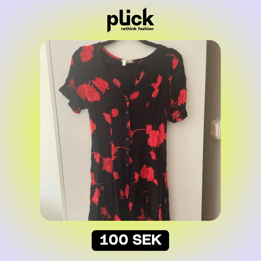Second hand kort klänning i rött/svart. Oanvänd!