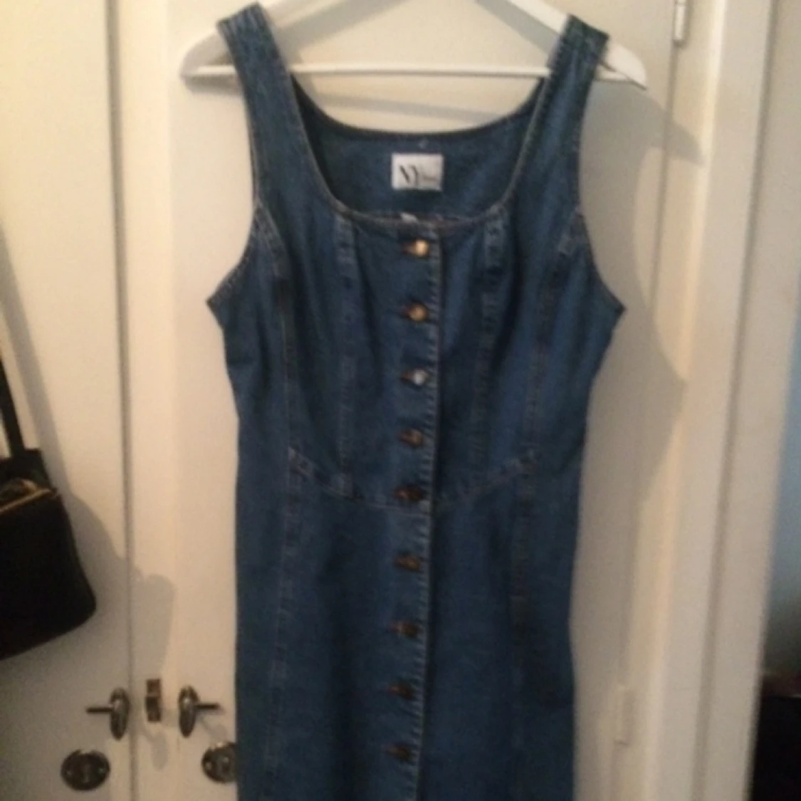 Köpte denna fina klänning och provade den inte och det visade sig att den var lite för stor för mig. Storleks lappen sitter inte kvar, men skulle gissa på 40.