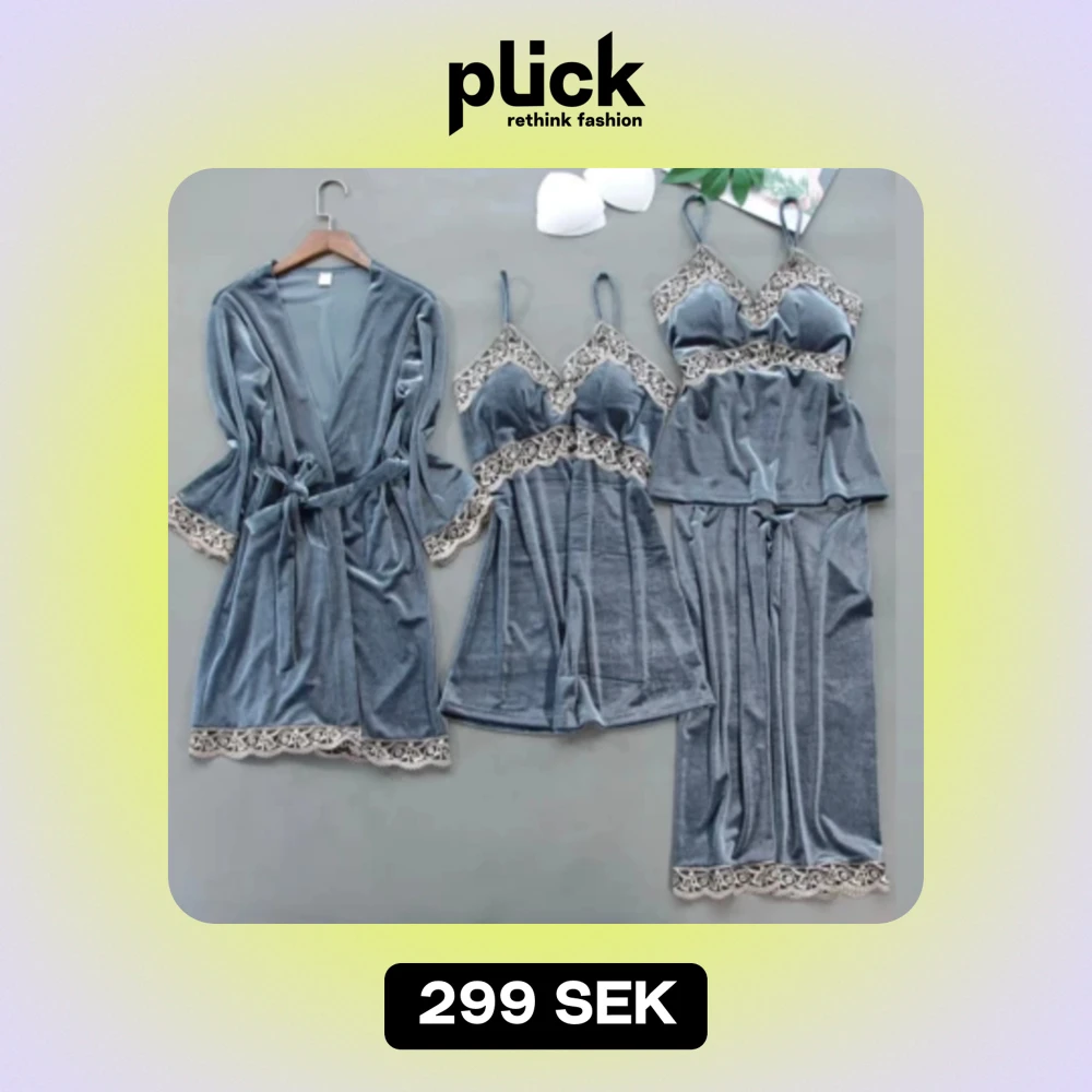 Ett så fint blått pyjamasset med spets, med byxor, tröja, klänning och morgonrock. Kom med prisförslag ❤️