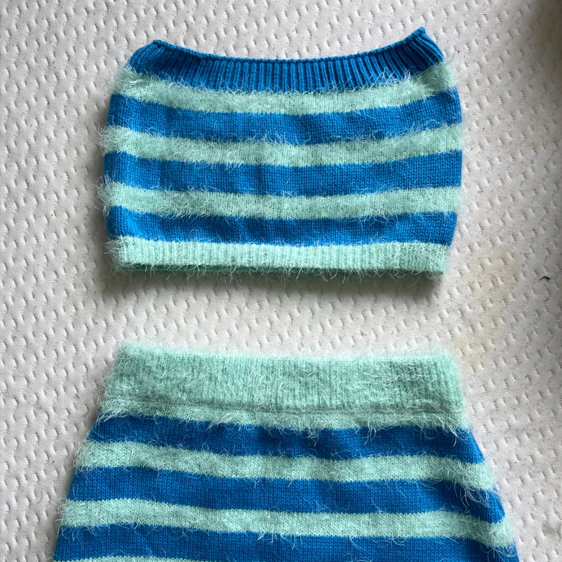 Ett supergulligt set i en fin turkos/grön och blå färg. Lurvigt och jätteskönt på!!