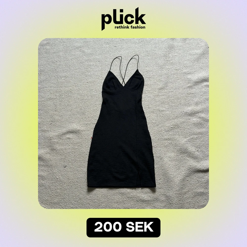 Snygg svart klänning från H&M Divided i storlek XXS. Den har tunna axelband och en djup v-ringning, perfekt för festliga tillfällen. Materialet är mjukt och stretchigt, vilket ger en bekväm passform. Klänningen är kort. Öppen rygg. Skriv för fler bilder eller frågor