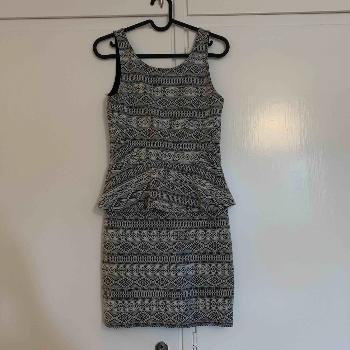 Det är en tajt klänning som inte har varit använd mer än 2 gånger. Klänningen har en lite öppen rygg som följer med en dragkedja.