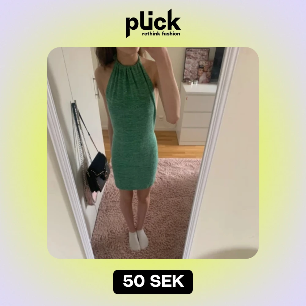 Säljer denna gröna klänningen med öppen rygg, aldrig använd. Skriv vid minsta lilla frågor eller fler bilder🩷 pris kan diskuteras.