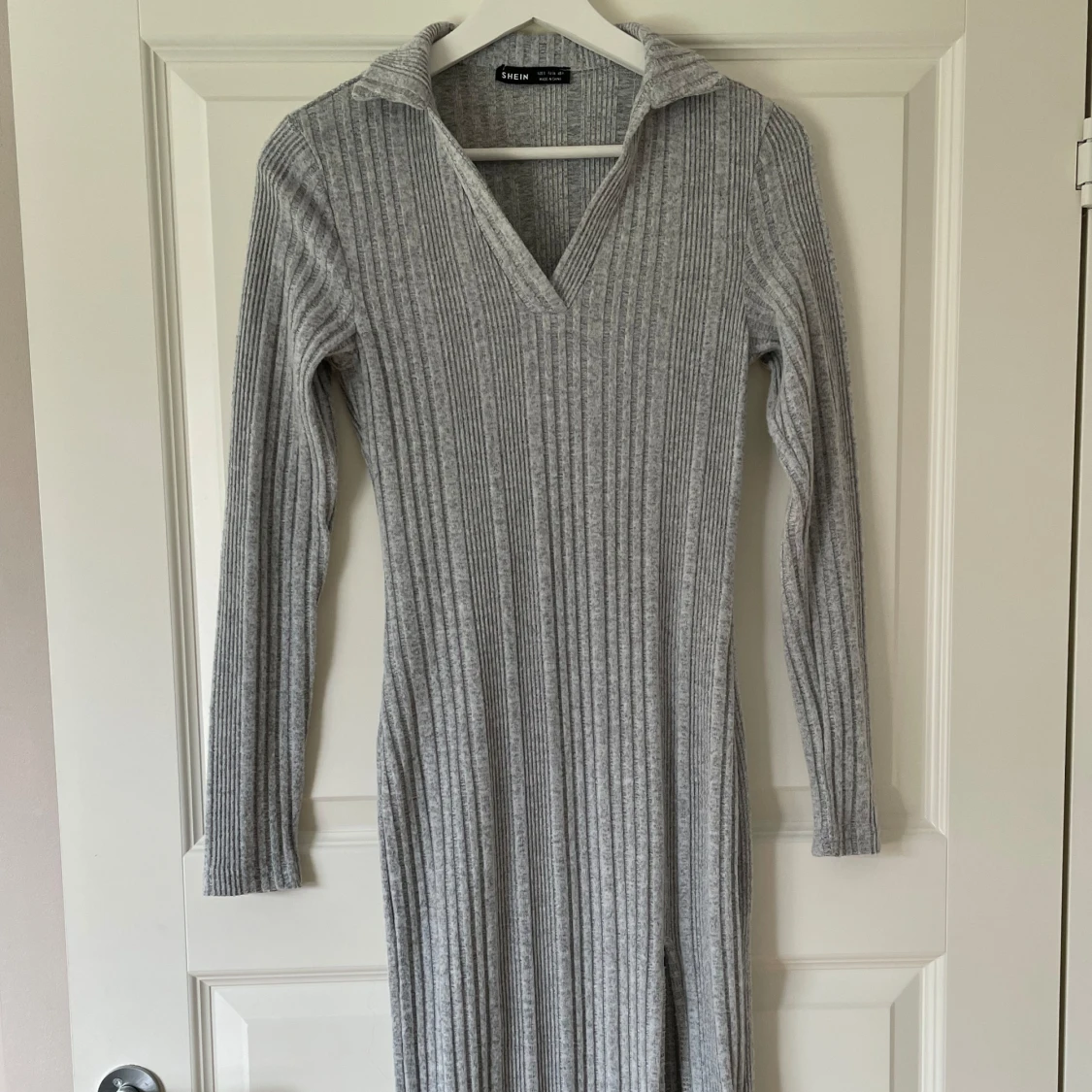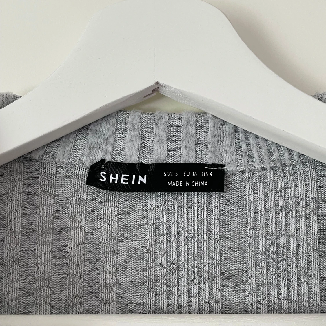 Grå stickad klänning från shein. Storlek 36, något mindre i storleken. Endast testad.